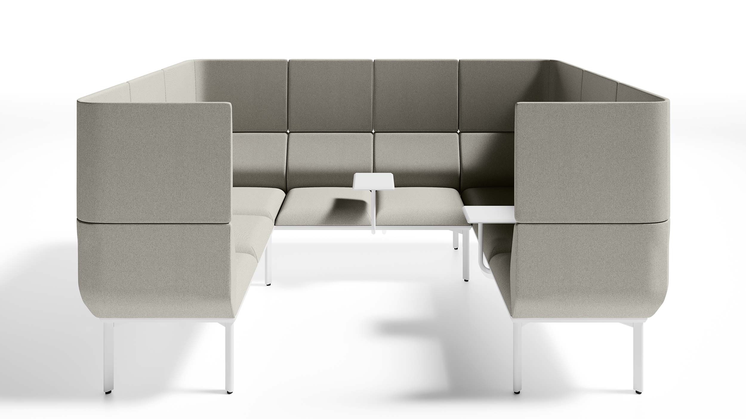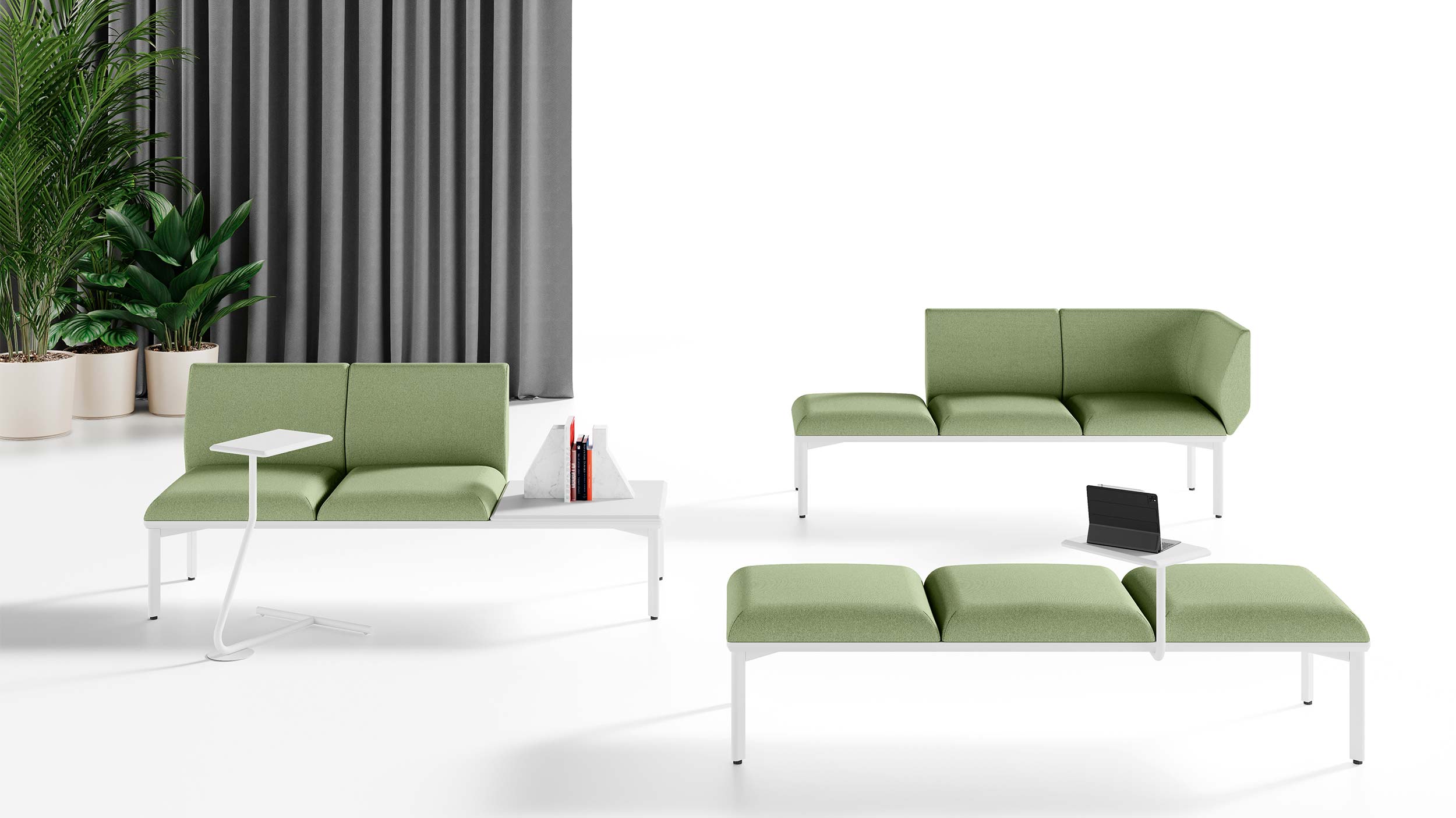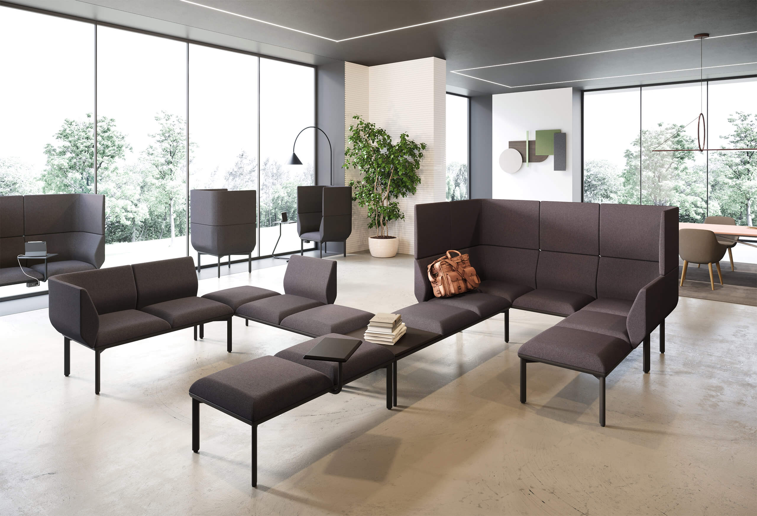 Divo esprime l’evoluzione della seduta componibile da attesa e contemporaneamente il cambiamento del modo di lavorare in ufficio. L’esigenza di lavorare al computer comodamente seduti o di effettuare riunioni da remoto o in presenza, in condizioni diverse dalla classica sala riunioni, è soddisfatta da sedute modulari variamente aggregabili. Gli schienali alti e bassi garantiscono differenti livelli di riservatezza, in base alle specifiche esigenze, oltre alla possibilità di essere completati con piani di appoggio di vario tipo.