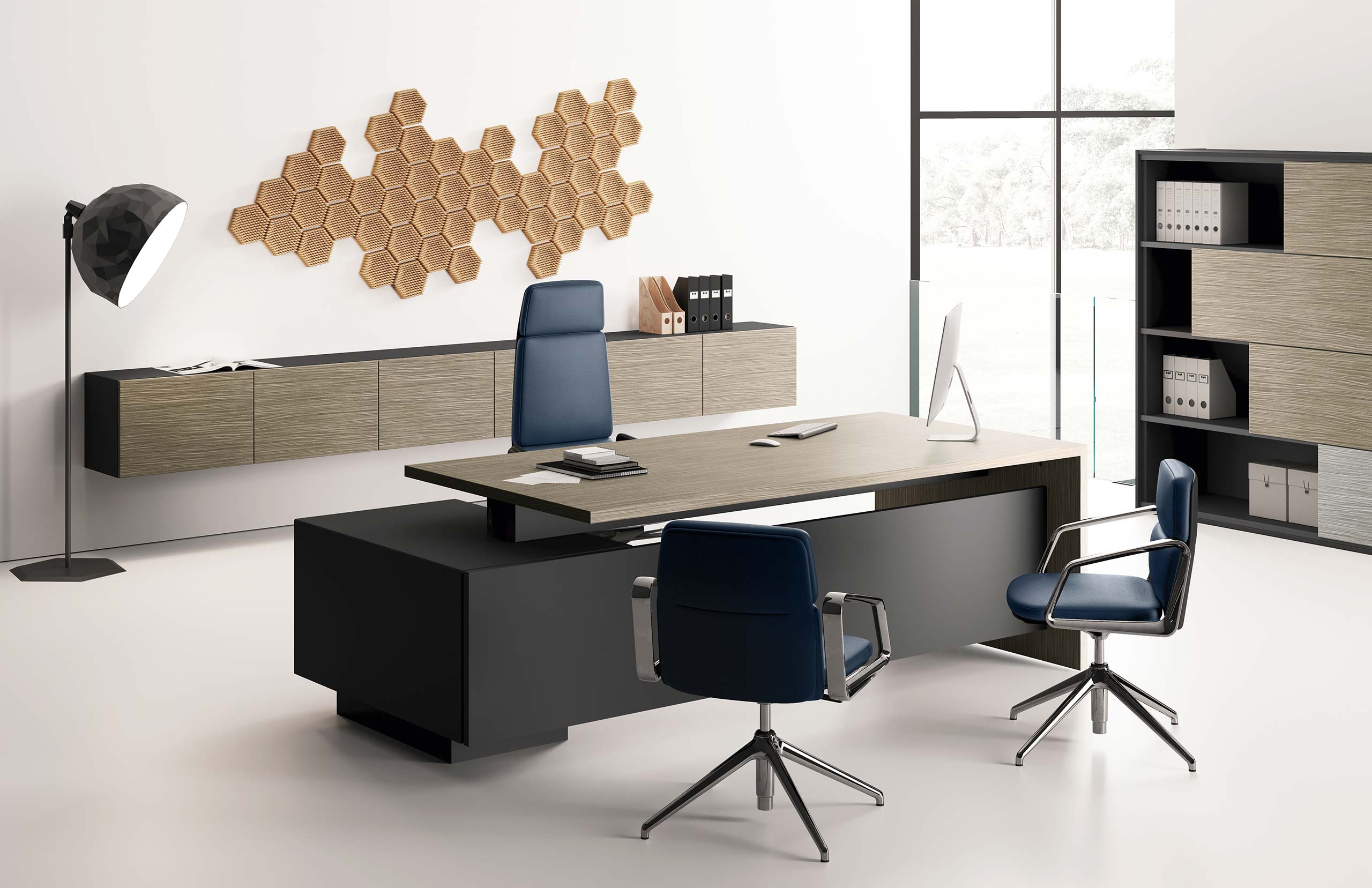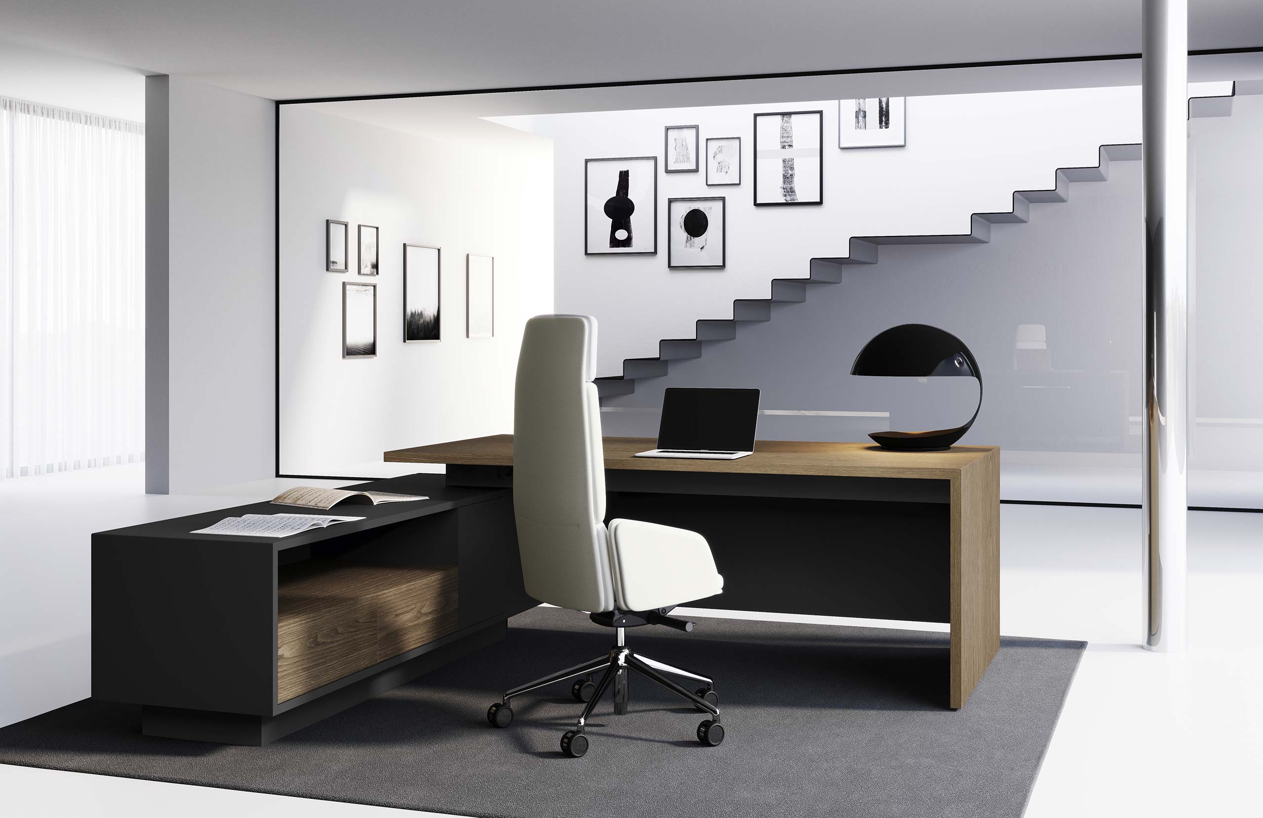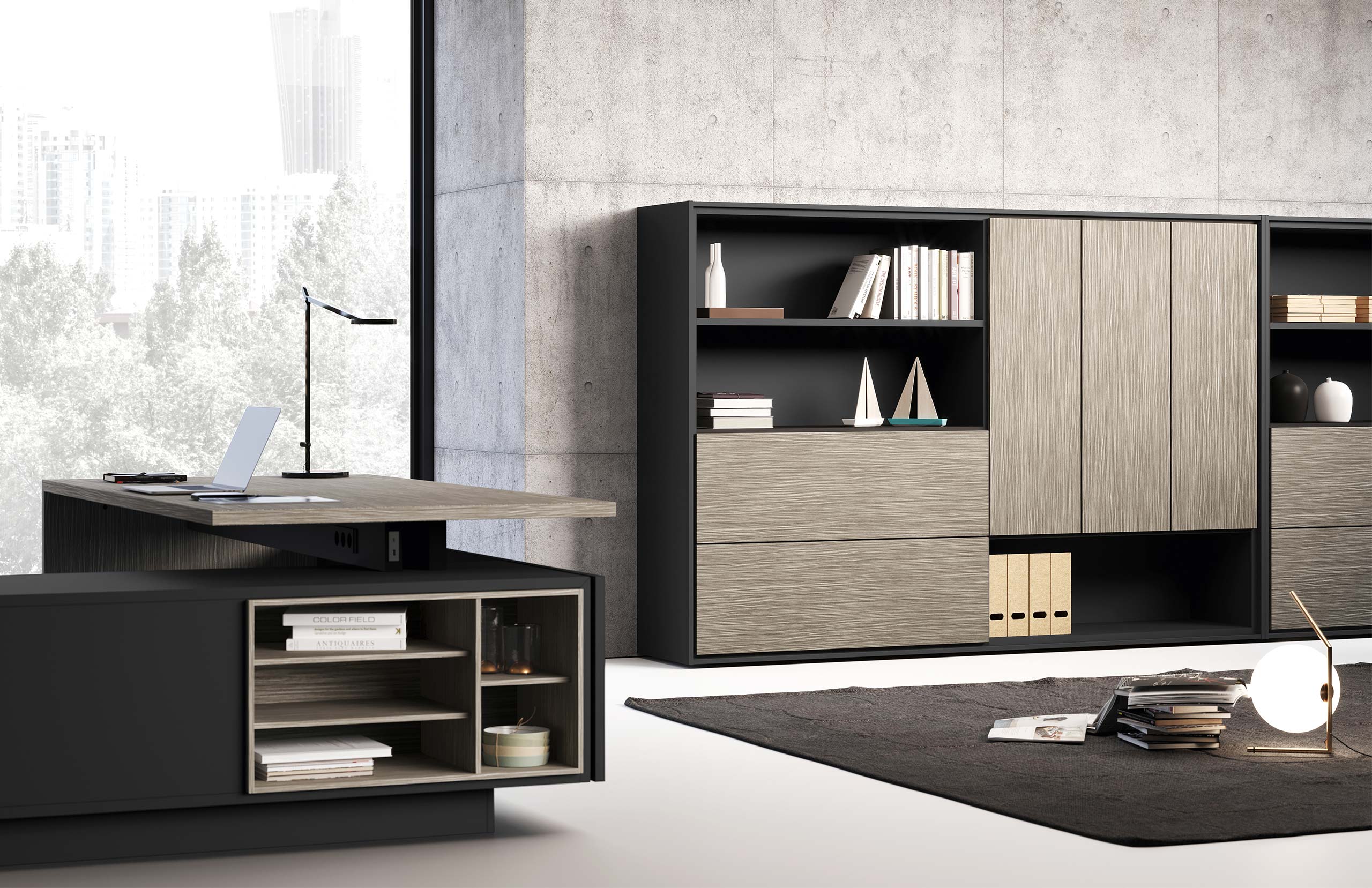 - Struttura monocolore con cassettiere o mobile di servizio portante