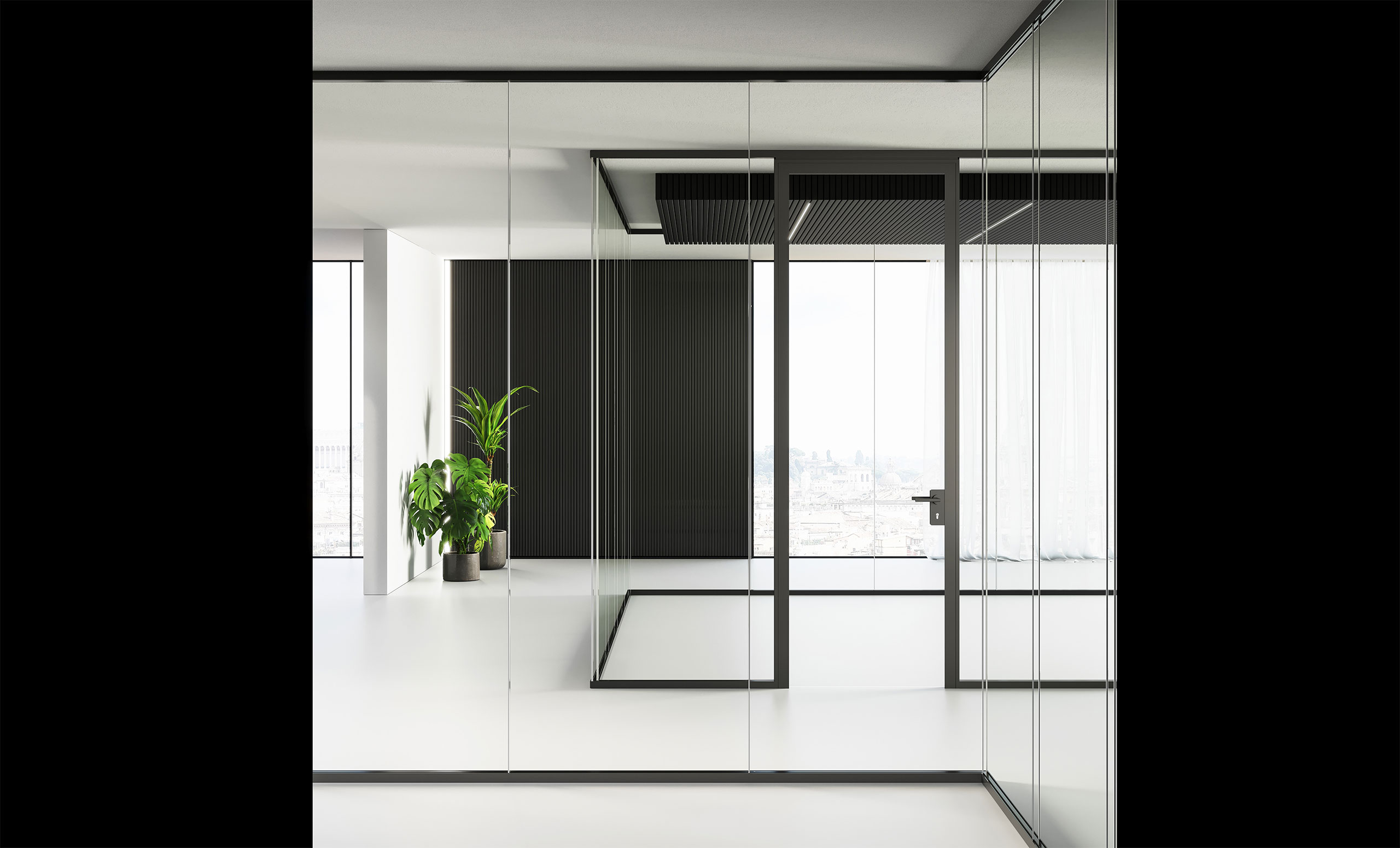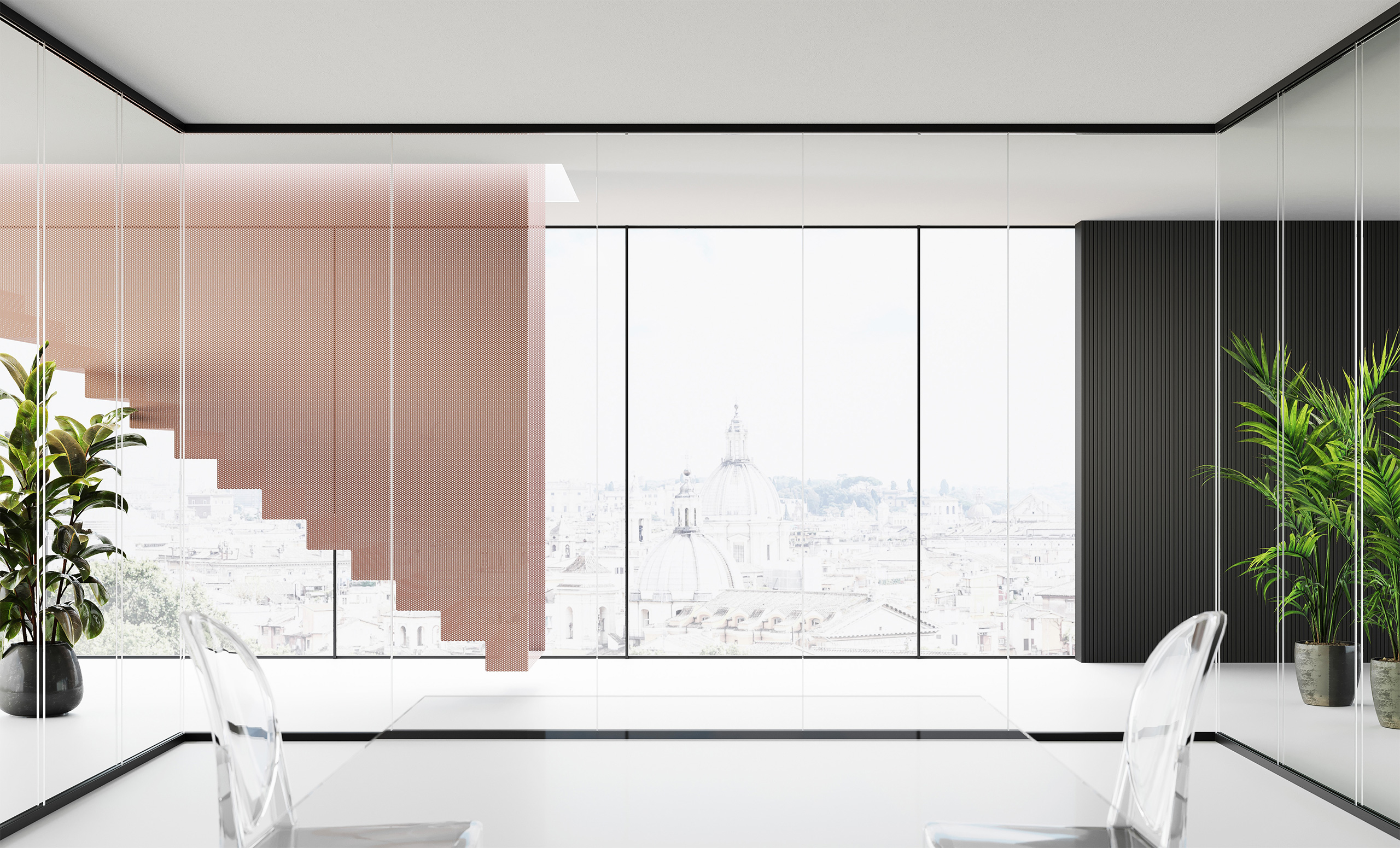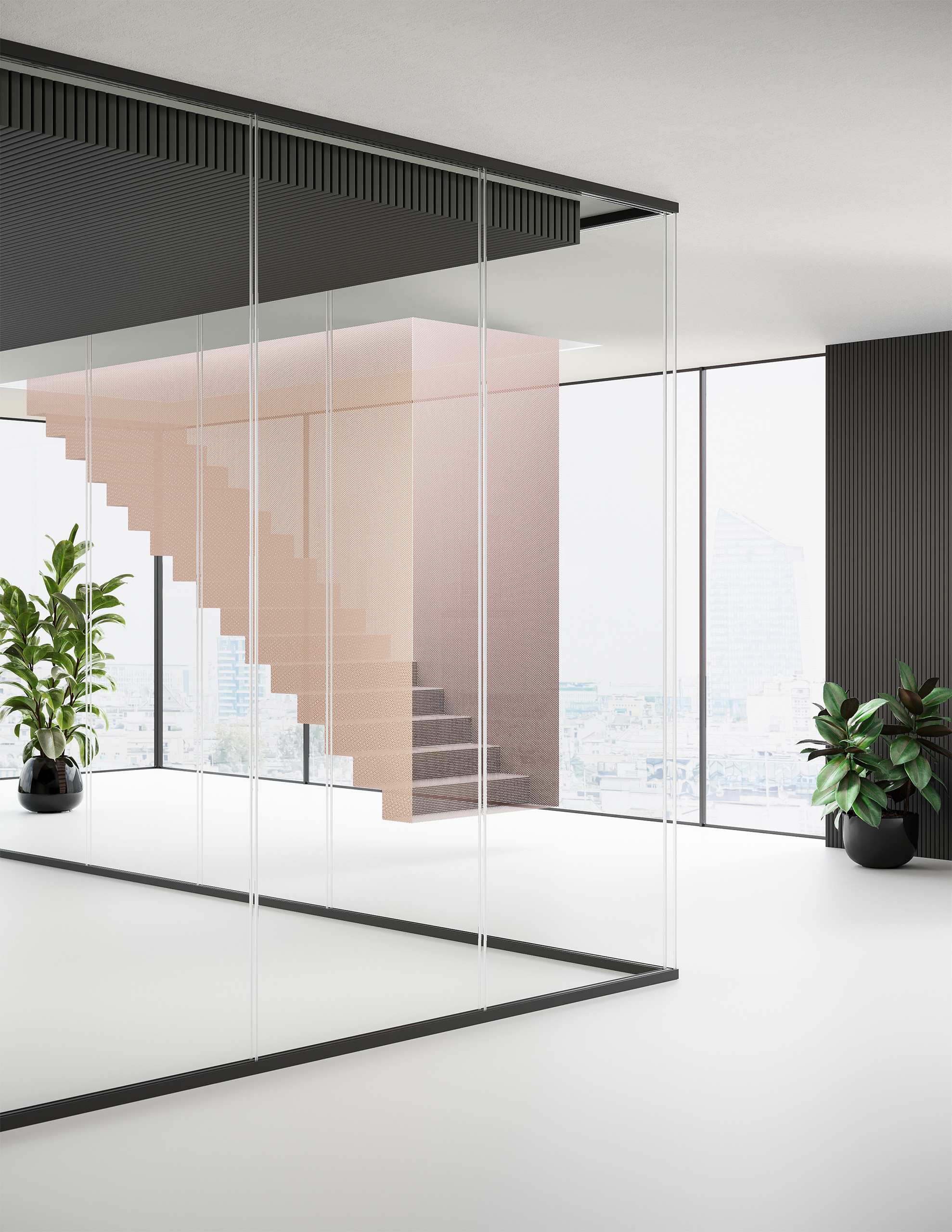 Un sistema di pareti divisorie in vetro autoportante in cui ogni elemento presenta minimo ingombro visivo e massima resistenza meccanica. Un progetto ispirato a criteri di eco compatibilità che prevede l’impiego di materiali perfettamente riciclabili e ricorre a tecniche produttive a forte sostenibilità ambientale.
