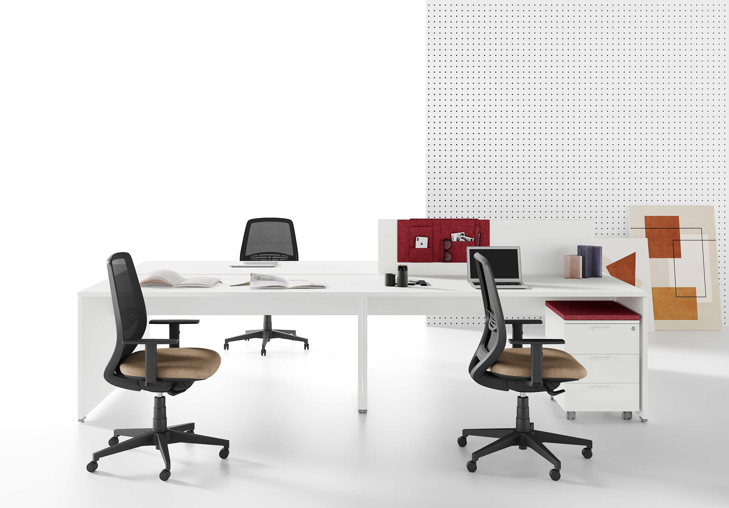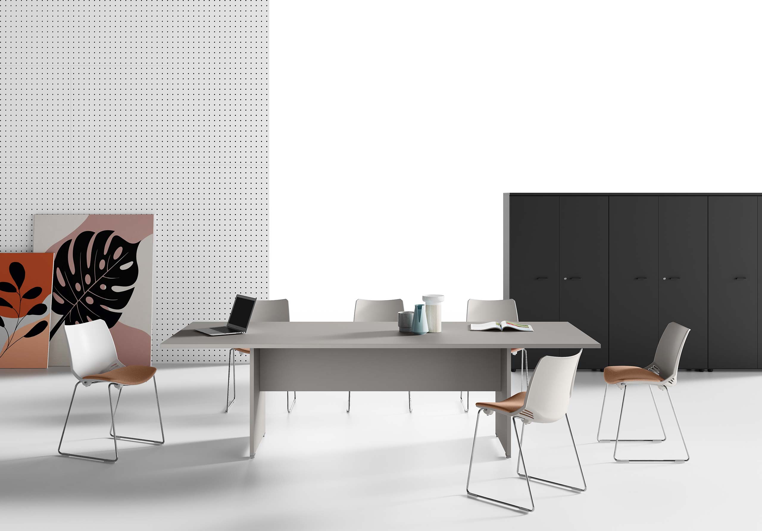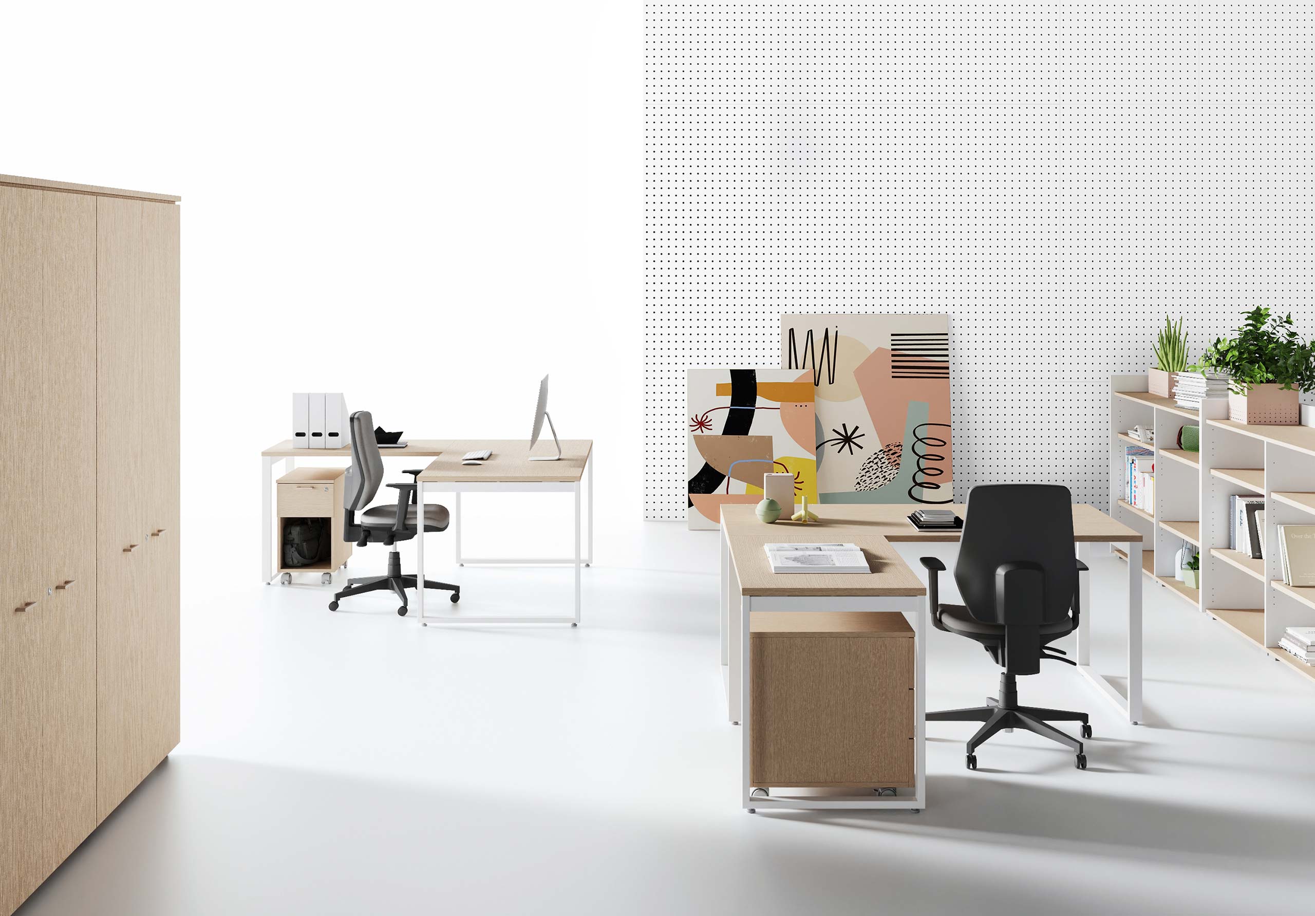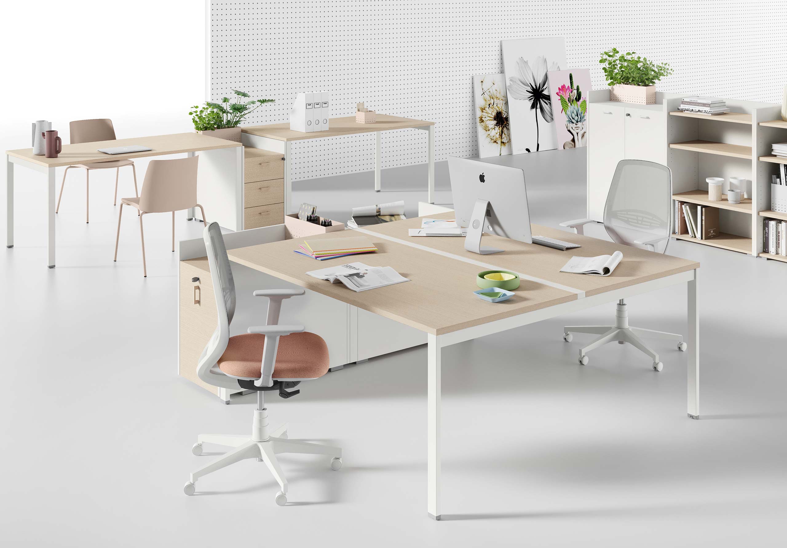 Oxi si caratterizza per la gamba a ponte sobria e sempre attuale. Con le sue soluzioni geometriche e tecniche soddisfa qualsiasi esigenza funzionale e di layout, inserendosi perfettamente in ogni ambiente grazie anche alle numerose finiture e agli accessori.