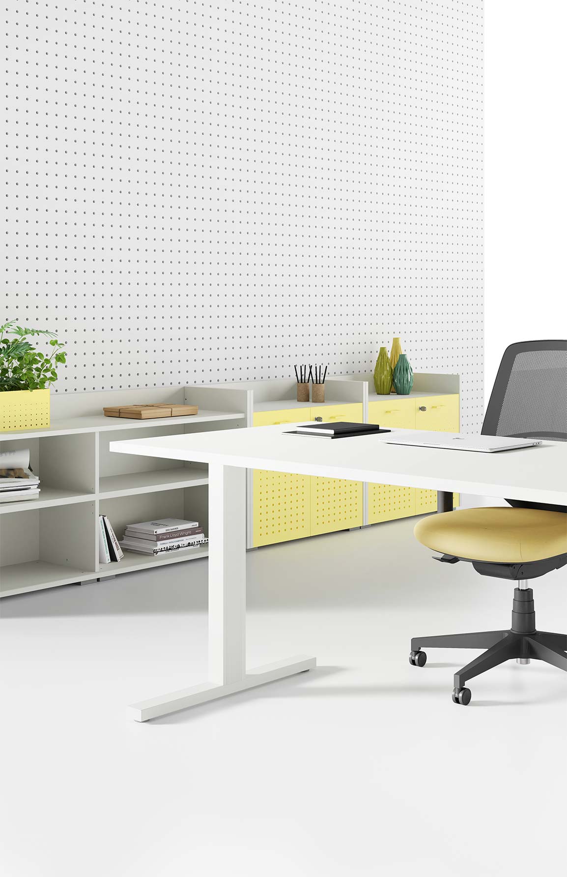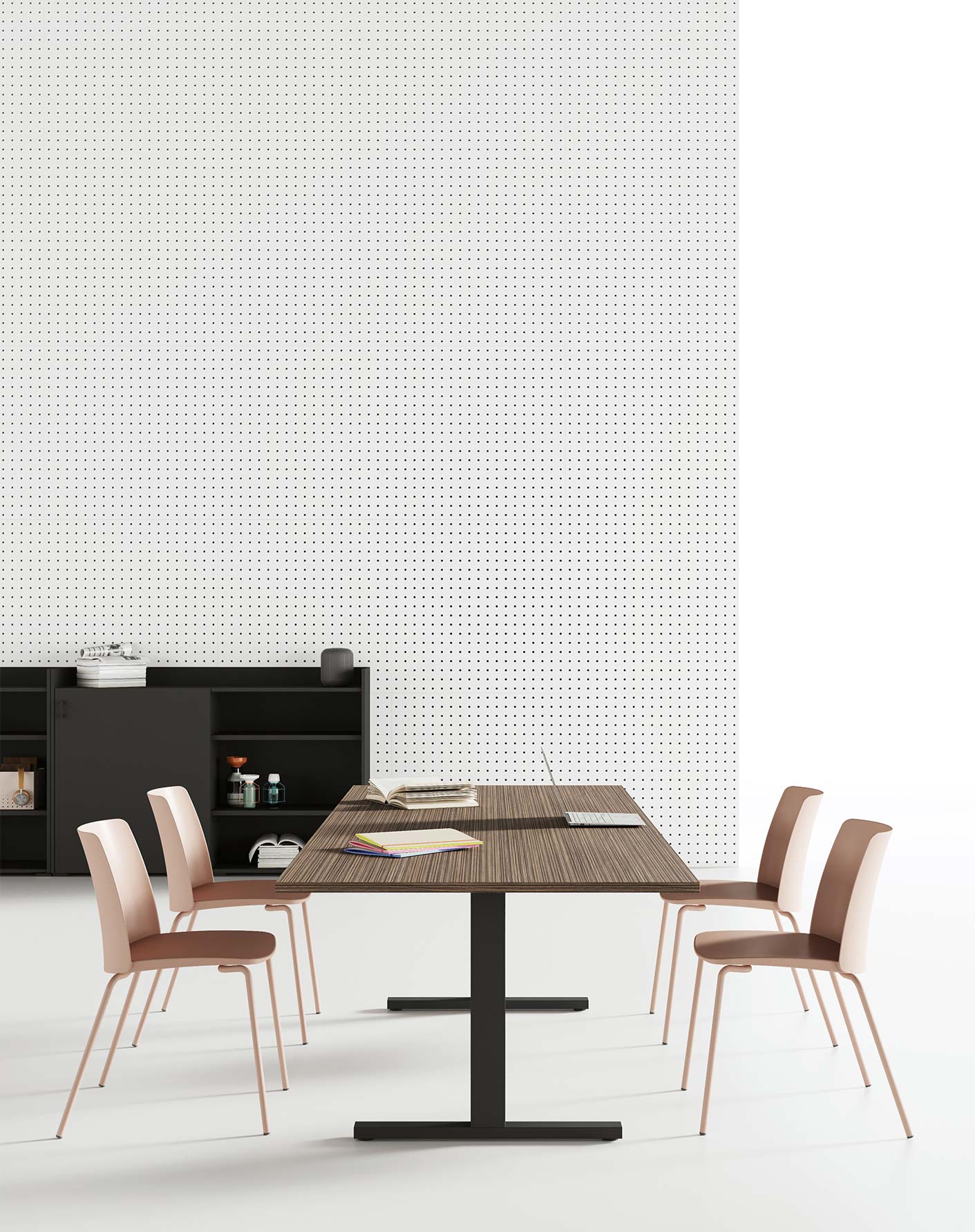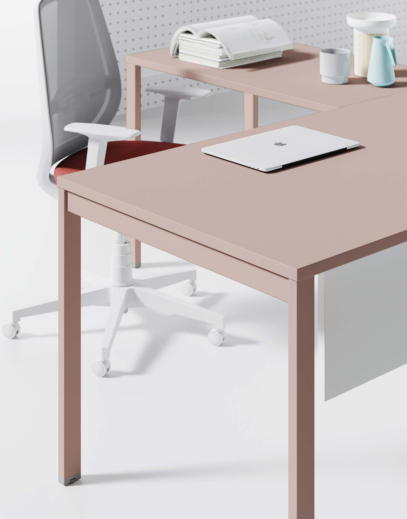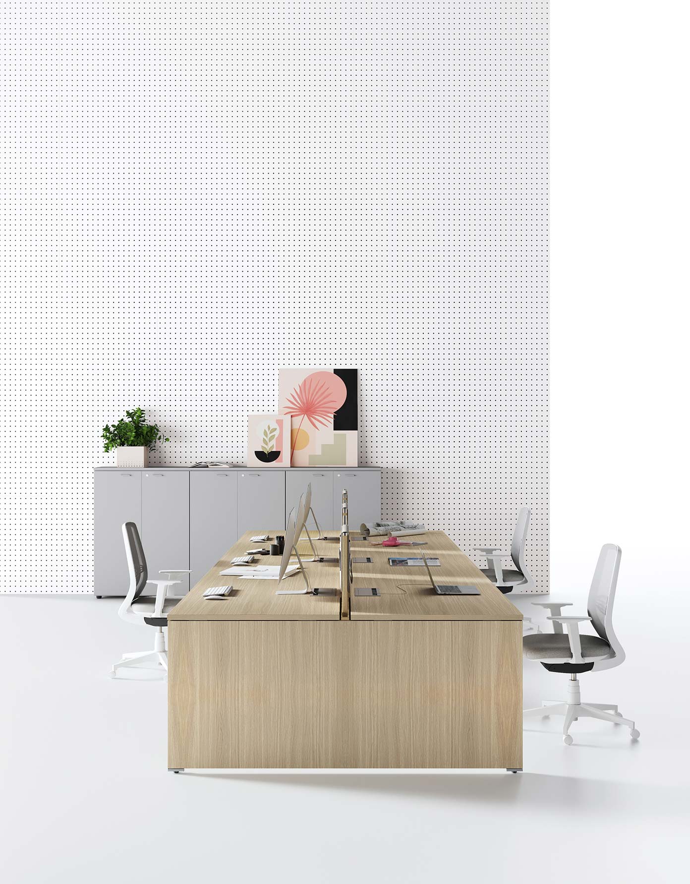 Oxi si caratterizza per la gamba a ponte sobria e sempre attuale. Con le sue soluzioni geometriche e tecniche soddisfa qualsiasi esigenza funzionale e di layout, inserendosi perfettamente in ogni ambiente grazie anche alle numerose finiture e agli accessori.