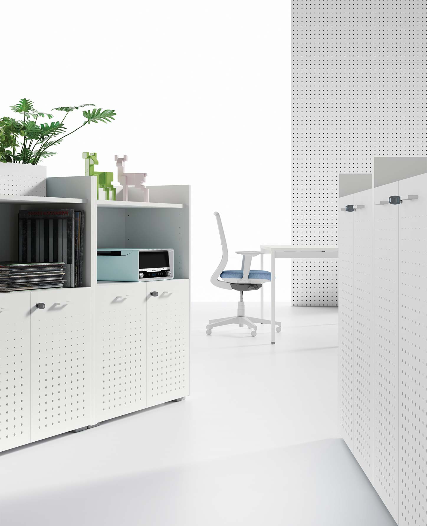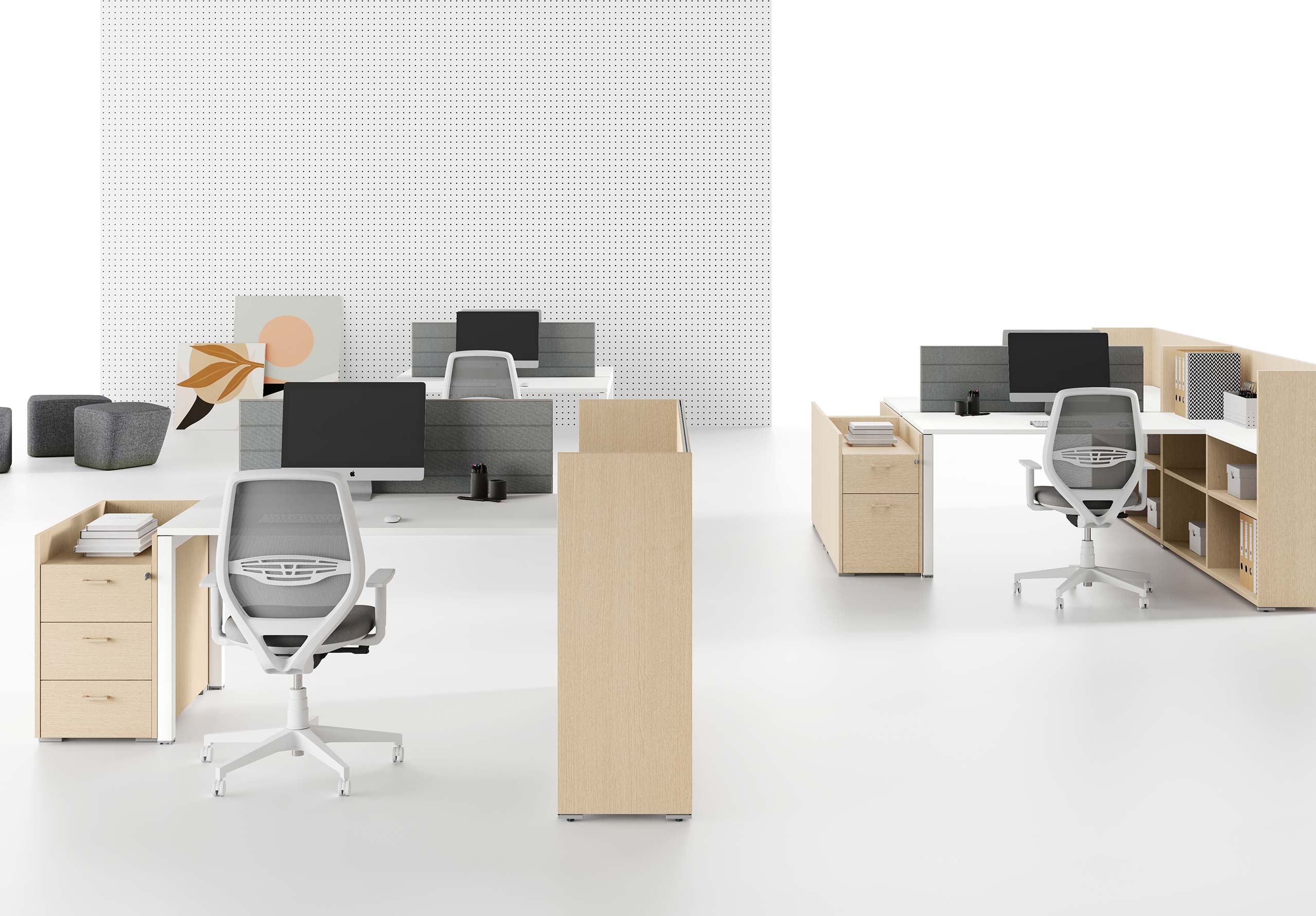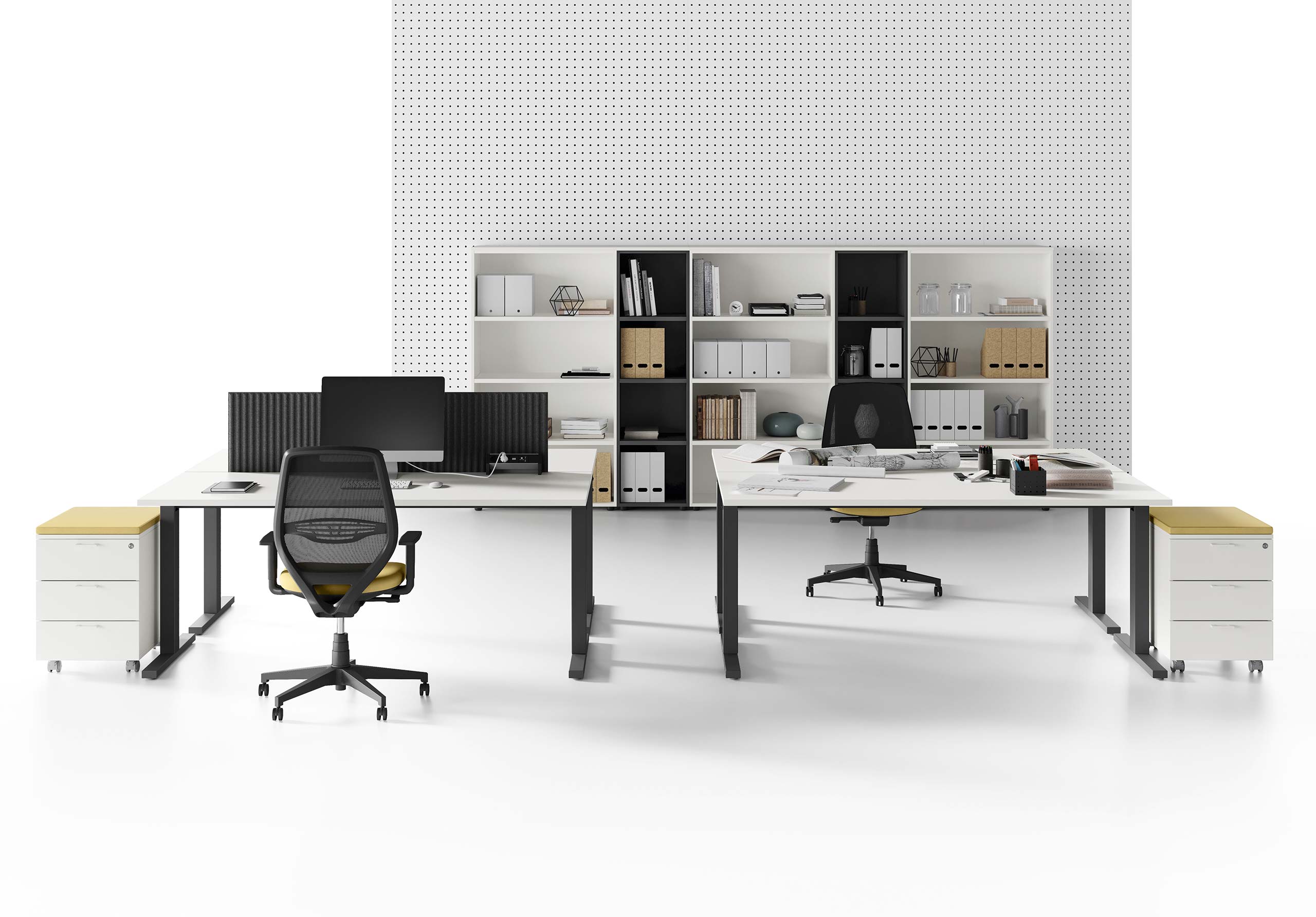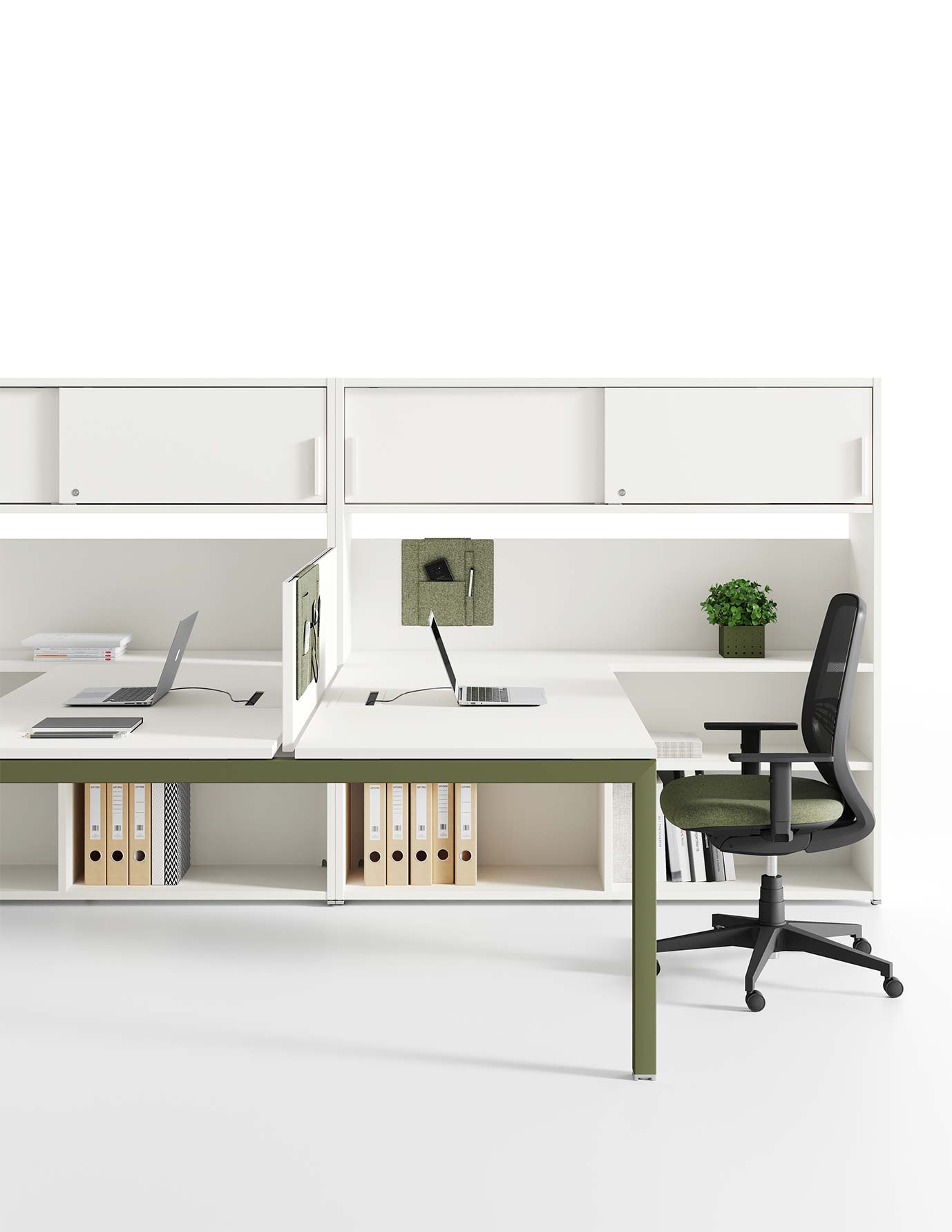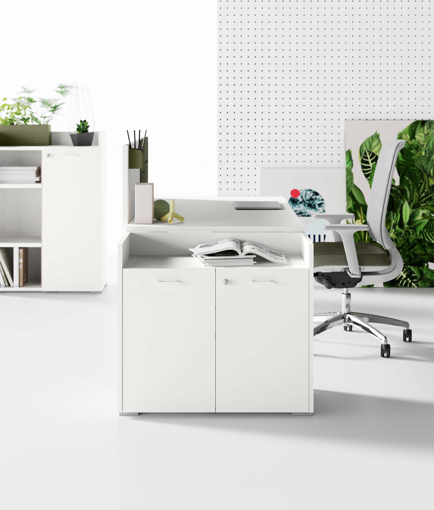 - Contenitori Comby in 2 altezze, autonomi e integrati con la scrivania