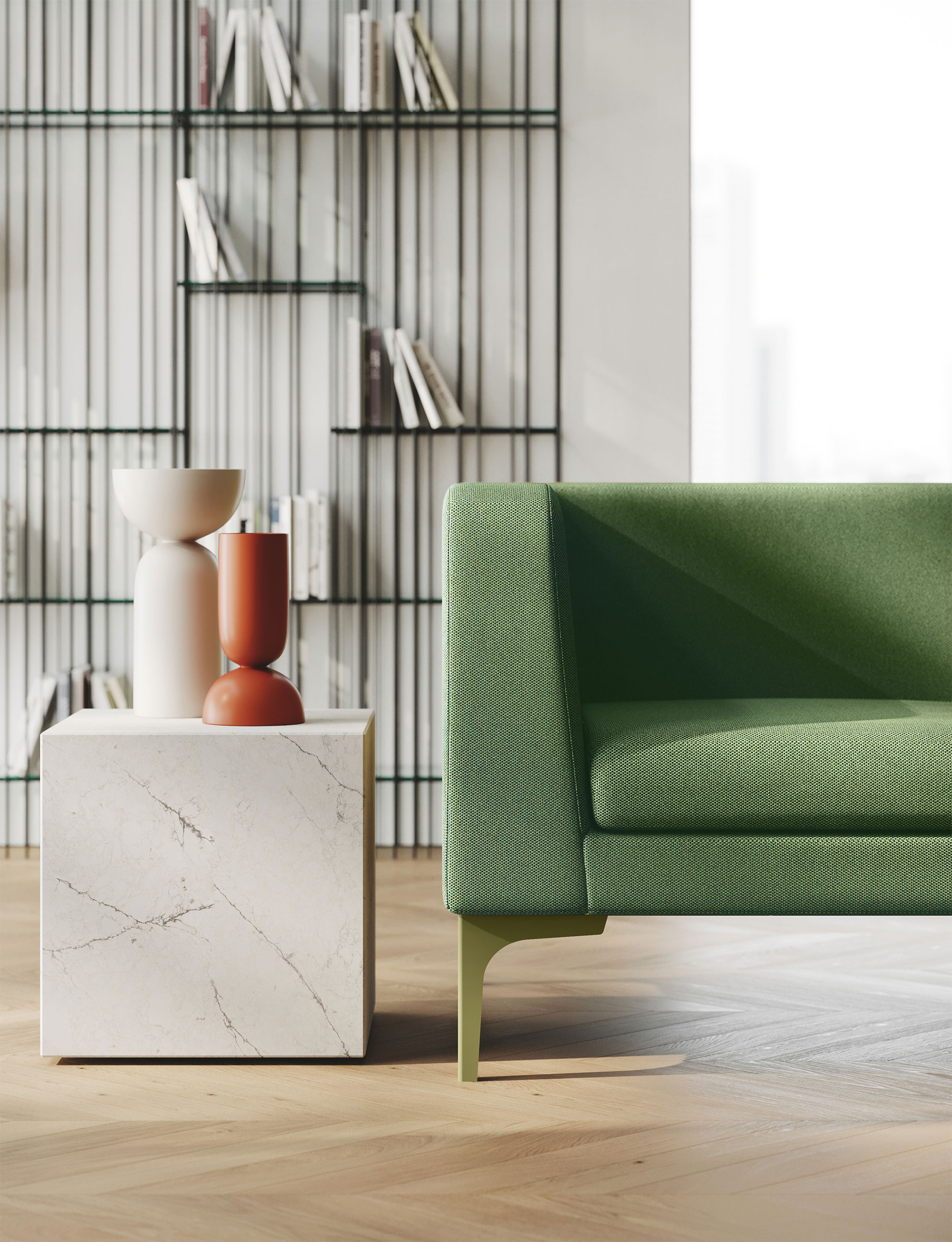 Una collezione di divani e poltrone di grande eleganza, dalle forme morbide e avvolgenti, ideale per spazi di attesa accoglienti e riservati.